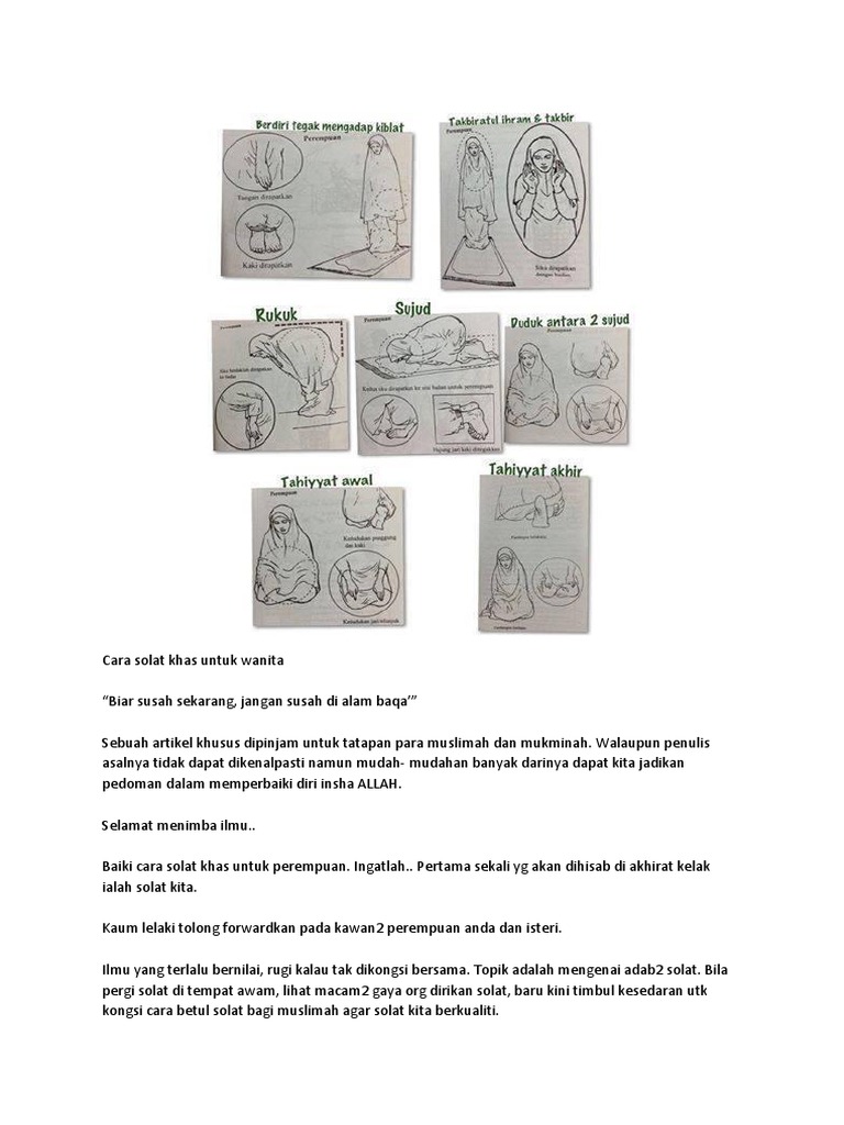 Cara Solat Wanita Yang Betul Bergambar Pdf - Sepertimana yang kami kongsikan sebelum ini tentang cara solat taubat yang ringkas, kami bawakan boleh download sebahagian cara solat tahajjud atau keseluruhan panduan qiamullail dari jakim dalam bentuk pdf di sini.. Bacaan sholat lengkap mulai dari takbir hingga salam Cerita dibuat dengan cara membuat sketsa pada bidang gambar dua dimensi berupa kertas. Wajah wanita tetanggaku yang selalu terbalut jilbab lebar ini mirip sekali dengan aktris marissa haque. .lengkap bagaimana menjalankan shalat atau tata cara shalat lengkap, disertai. Tata cara sholat yang benar sesuai sunnah lengkap: