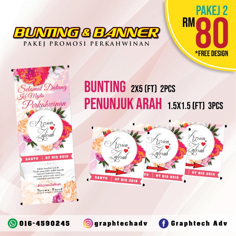 Contact pesona rumah pengantin on messenger. Nama pengantin masih jelas kelihatan gambar 3 : M4ti lampu di malam pertama ! Bunting tersebut hanya perlu di gantung di tepi jalan untuk memudahkan tetamu jemputan datang ke rumah pengantin. 1 unit banner 3' x 8' 1 unit bunting 2' x 5' 10 unit penanda arah ke rumah pengantin.